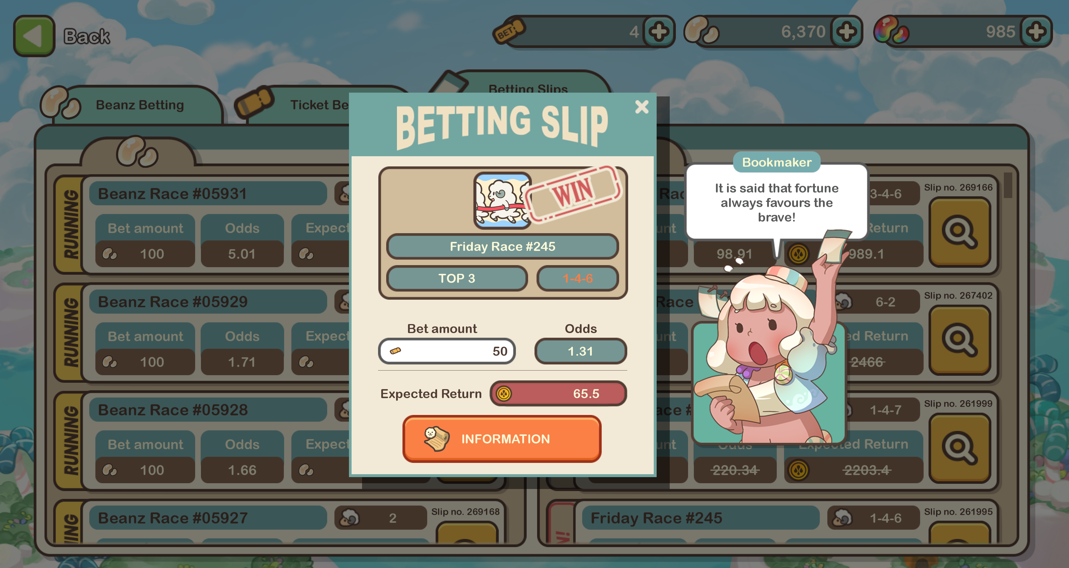 * **Race Information**: After a race, if you’ve won, you can cash out directly from the race information screen.