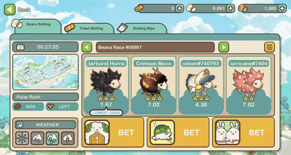 1. **Explore Upcoming Races**: In either Beanz or Ticket Betting, view the list of upcoming races with details like start times, track maps, and betting options.